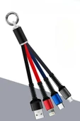 BUFFER® Işıklı Anahtarlık Model 3 in 1 USB Çıkışlı MİKRO,TYPE-C ve İphone Uyumlu Şarj Kablosu