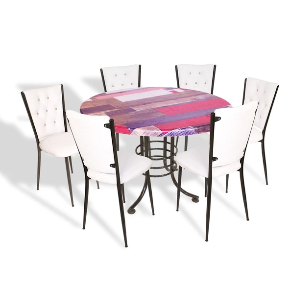Buket Mega Werzalit Yuvarlak - Kapitoneli Mutfak Masa Takımı Q107 - Red Wood Beyaz