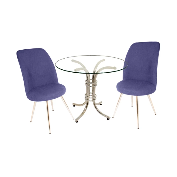Buket Yuvarlak Cam - Saray 2li Mutfak Masa Takımı - Lacivert