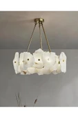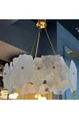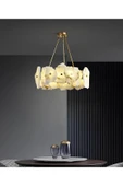 burenze Luxury Exclusive Modern Marble Tasarım Ledli Mermer Avize Eskitme Gold Sarı Led Avize 60 Cm Çap