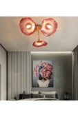 Ana Sayfa Ev Dekorasyon Aydınlatma Avizeler burenze Luxury Modern Exclusive Tasarım Mor Lila Kristal Camlı Flower Çiçek Üçlü Avize Eskitme Gold Sarı