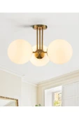 burenze Modern Tasarım Tavana Sıfır Emma Beyaz Glop Camlı Avize Salon Mutfak Oturma Odası Avize Eskitme Gold