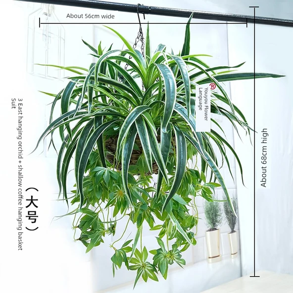 Büyük Yuvarlak Askılı Sepet Açık Kahve + 3 Demet Yapay Orkide