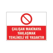 Çalışan makinaya yaklaşmak yasaktır, isg uyarı levhası