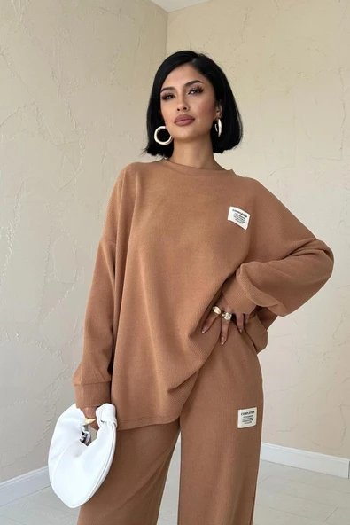 Camel Klasik Fitilli Kazak Ve Pantolon Takım