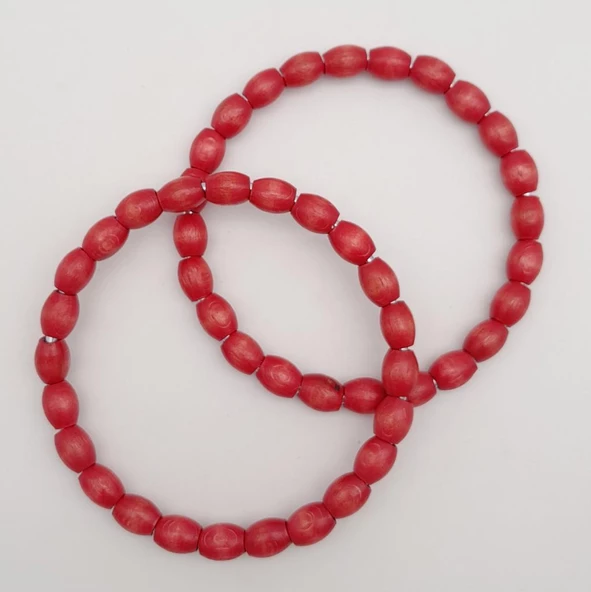 Angel Çanta Aksesuar 12 cm Oval Ahşap Boncuklu Bilezik Model Kırmızı Renk Çift Sap