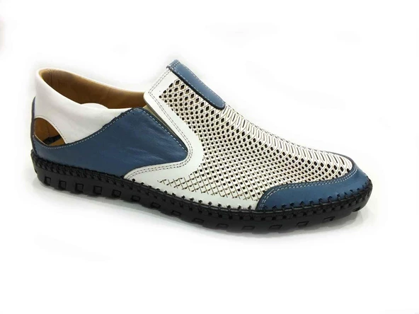 Çarıkçım Hakiki Deri Yazlık Ayakkabı Beyaz-Mavi 05 922