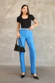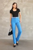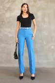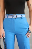 Ana Sayfa Giyim & Aksesuar Kadın Giyim Pantolon Günlük Pantolon Cep Detaylı Beli Lastikli Kemerli Kumaş Pantolon 6157-İndigo