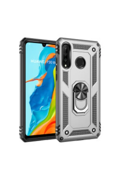 CEPCASE Huawei P30 Lite Kılıf Yüzüklü Standlı Mıknatıslı Zırhlı Panzr Koruma 9h Antishock Nano Cam