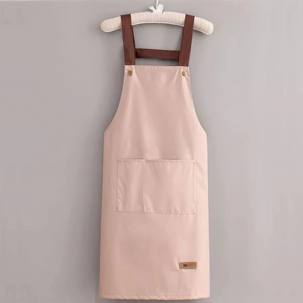 Cepli Su Geçirmez Yağa Dayanıklı Mutfak Önlüğü - Uzun Deri Standart Önlük Pembe