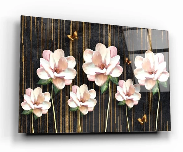 Çiçekler Cam Tablo | Hediyelik, Dekoratif, Ofis, Mutfak
