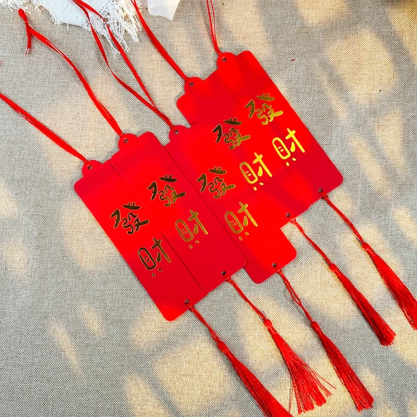 30 Yeni gelen [Şans] altın yaldızlı kırmızı kart + kırmızı kurdele + kırmızı püskül