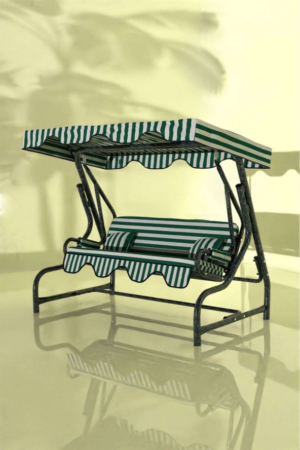 - Çizgili 3 Kişilik Bahçe Salıncağı Balkon Teras Salıncak Gümüş