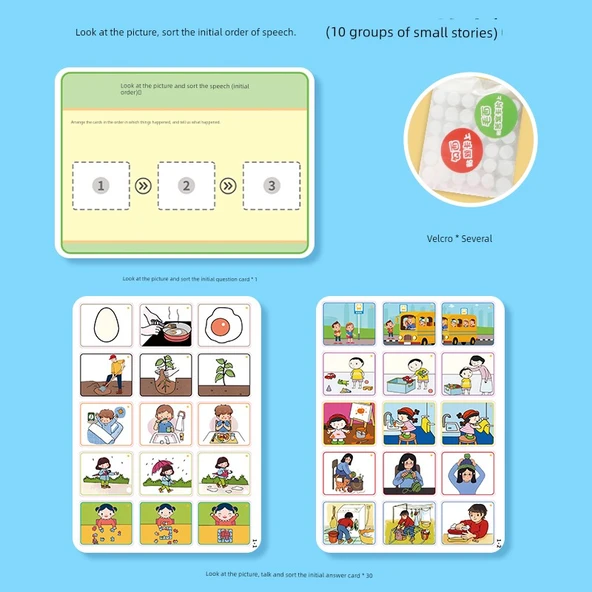 Çocuk Hikaye Anlatma Resim Kartları - Mantıksal Sıralama Eğitimi - Başlangıç Seviyesi Resim Sıralama - 1 Soru Kartı + 30 Cevap Kartı
