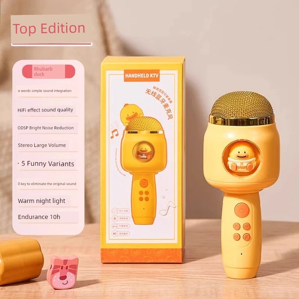 Çocuk Karaoke Mikrofon Oyuncak - 1.0 Üst Düzey Dayanıklı Sarı Ördek