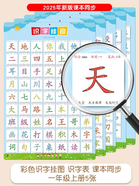 [2025 Yeni Baskı] 5 Renkli Okuryazarlık Duvar Çizelgesi [284 Kelime Birinci Yıl İlk Kitap Ders Kitabı Okuryazarlık Tablosu Senkronizasyonu]