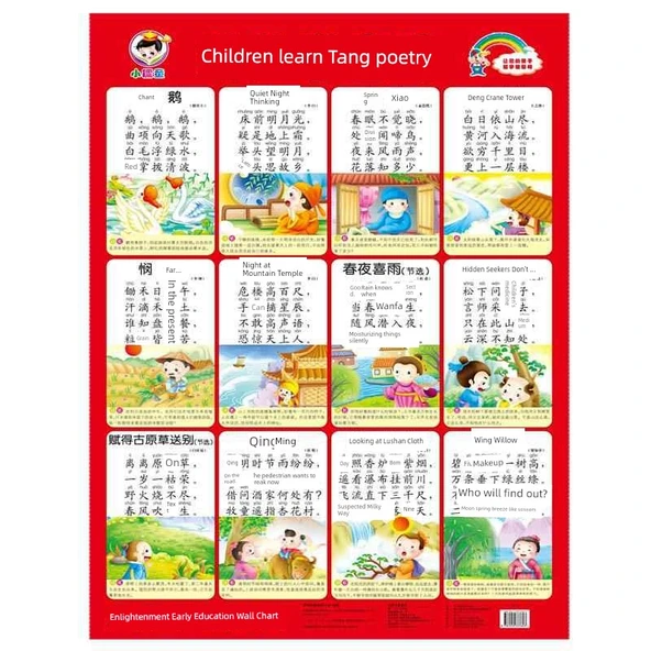 Çocuklar İçin Erken Öğrenme Eğitici Duvar Tablosu - Tang Şiiri Öğren