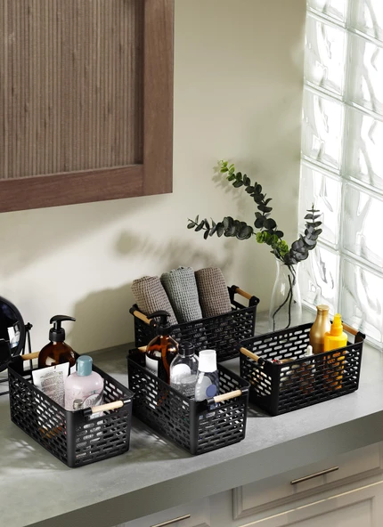 Çok Amaçlı Tutacaklı Organizer Sepet - Dolap Içi & Çekmece Düzenleyici Sepet - Siyah