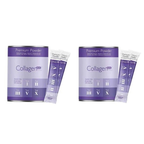 collagen forte platinum 2 KUTU Powder Collagen 300g, 5 Tip Toz Kolajen 10.000mg X 30 Şase & Multivitamin Çilek Aromalı