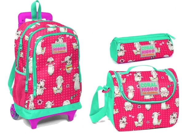 Coral High Lama Desenli Çekçek Tekerlekli Okul Çanta Seti