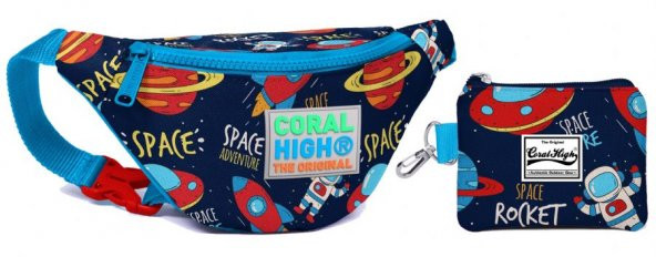 - Coral High Uzay ve Gezegenler Baskılı Bel Çantası Seti - Mavi