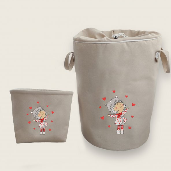 Cute Girl Sevimli Kız Nakışlı Bez Oyuncak & Kirli Sepet Seti