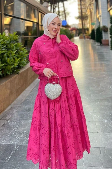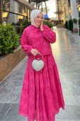 Dantel İşlemeli Tesettür İkili Takım - Gömlek ve Kat Etek Kombin DNV-000043