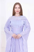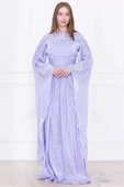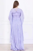 - Dantel ve Pelerin Detaylı İşlemeli Abiye Elbise 2762-Lila
