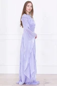 Dantel ve Pelerin Detaylı İşlemeli Abiye Elbise 2762-LilaRenk