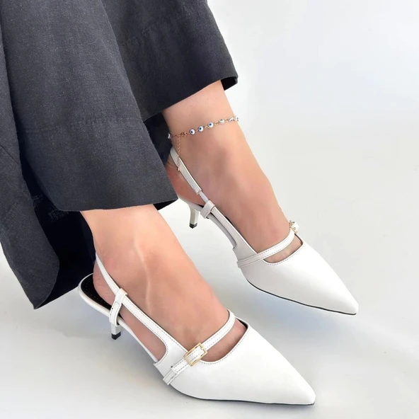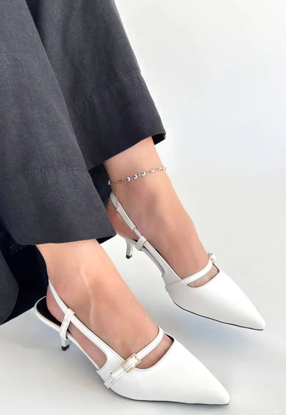 - Darina Beyaz Cilt Topuklu Ayakkabı