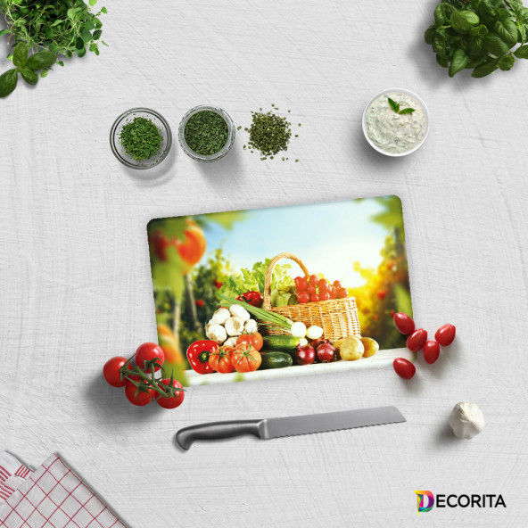DECORITA Cam Kesme Tahtası- Sebze Sepeti