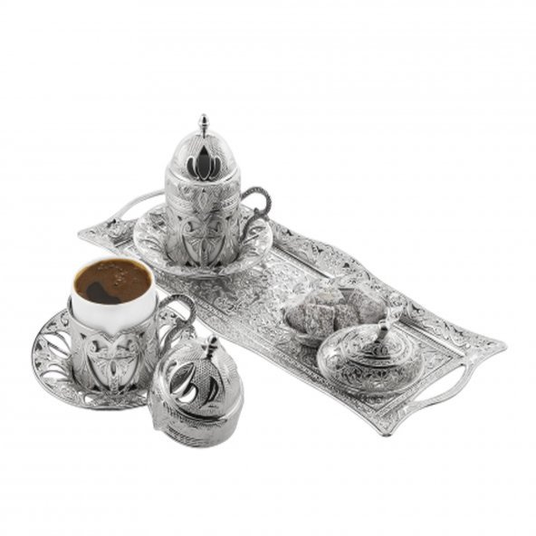 Defne Model Döküm Gümüş İki Kişilik Tepsili Kahve Takımı
