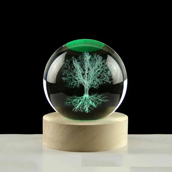 Dekoratif Ağaç Tasarımlı Ahşap Altlıklı Işıklı Cam Küre 6 Cm MZ4-2331