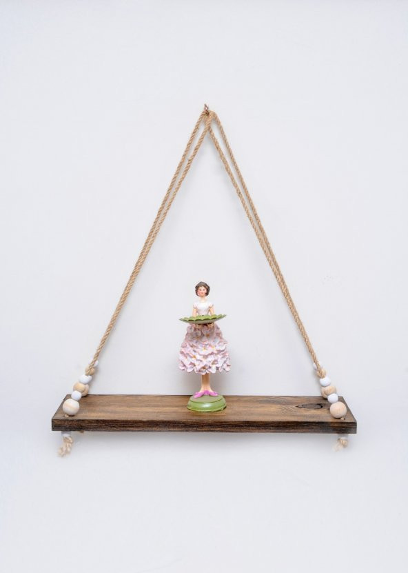 DEKORATİF AHŞAP BONCUKLU HALATLI DUVAR RAFI - KİTAPLIK - ÇİÇEKLİK