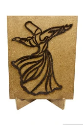 Dekoratif Semazen Portresi Ahşap Üzerine Kazıma Ahşap Ayaklı