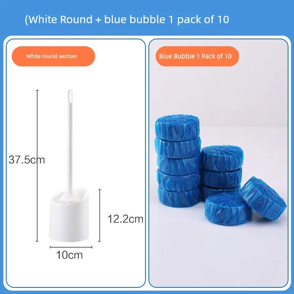Deliksiz Duvara Monte Tuvalet Fırçası - Beyaz Yuvarlak + Mavi Köpük Paket (10 Adet)