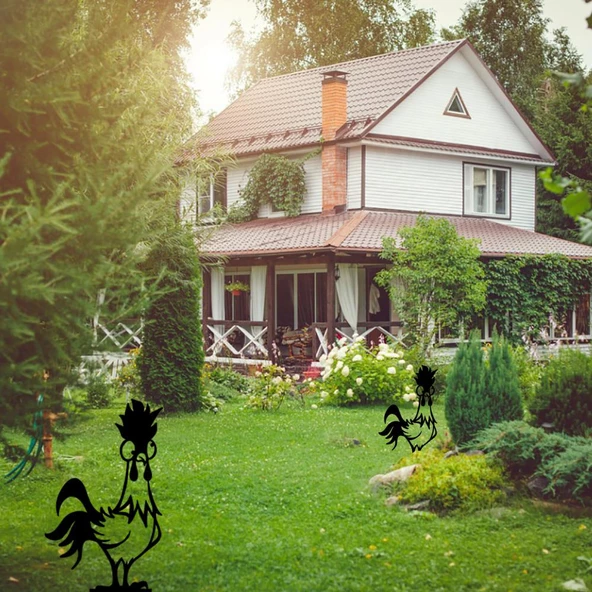 Demir Bahçe Kazığı Metal Horoz Bahçe Süsü