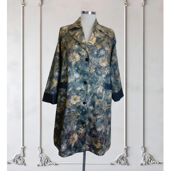ÇİÇEK DESENLİ SİYAH KOT TRENÇbeden
