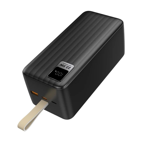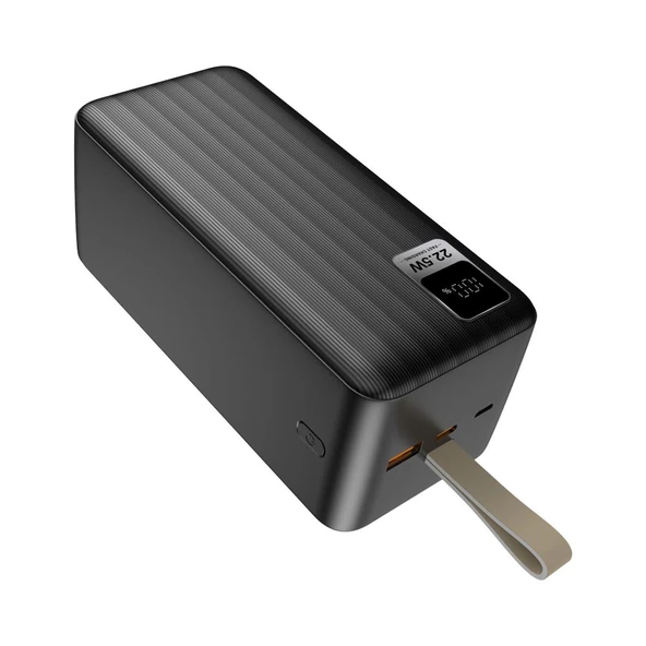 - Dexim K55 50.000 mAh 22.5W USB ve Type-C Çıkışlı Led Ekranlı Askılı PD Powerbank Siyah - DCA0055