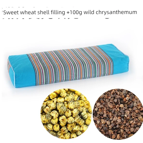 Dikdörtgen Mavi Karabuğday Kabuklu ve Yaban Krizantemli Yastık - 6-12cm