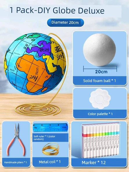 DIY Dünya Küresi Kiti - Geliştirilmiş Lüks Versiyon + Renk Diski - 1 Paket - 20cm