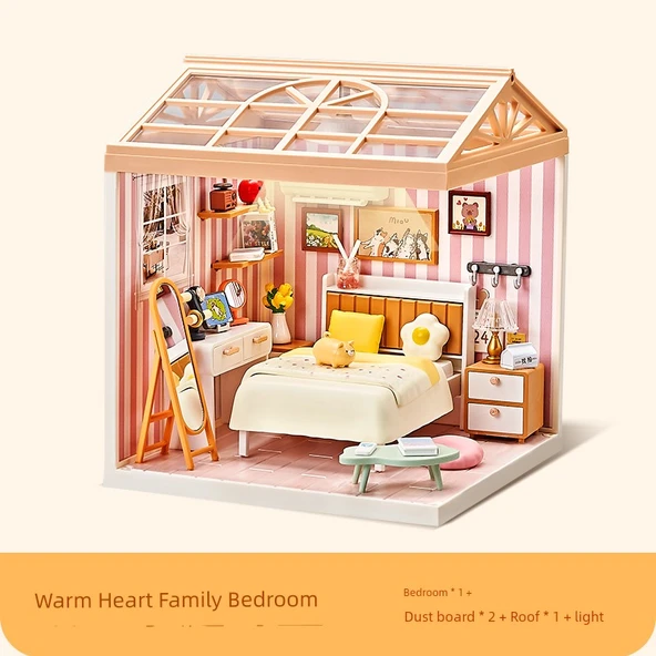 DIY Minyatür Dünya Yapı Taşları Oyuncak Model Ev - Sıcak Aile Yatak Odası