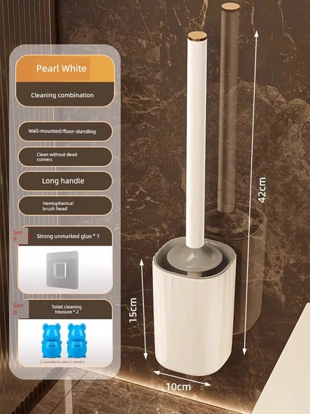 Duvara Monte Tuvalet Fırçası - Sedef Beyazı + 2 Tuvalet Temizleyici