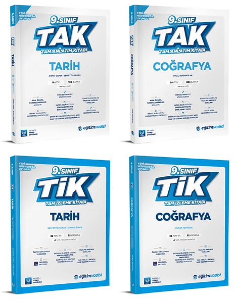 Eğitim Vadisi 2025 9. Sınıf Tarih + Coğrafya Tak Tam Anlatım + Tik Tam İzleme Seti 4 Kitap