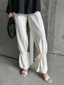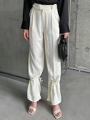 Ana Sayfa Giyim & Aksesuar Kadın Giyim Pantolon Günlük Pantolon Ekru Paçası Bağlama Detaylı Saten Pantolon