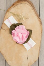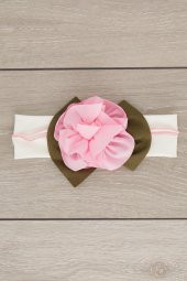 Ekru Pembe El Yapımı Yumuşak Eşsiz Aksesuarlı Doğal Pamuklu Penye Bebek Çocuk Kız Bandana ELMAS SERİ
