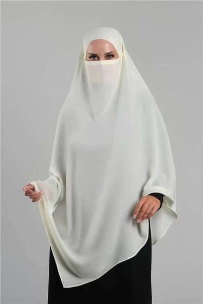 Ekru Pratik Hazır Geçmeli Tesettür Eşarp Krep Bağcıklı Çift Katlı Sufle Hijab 2314_27