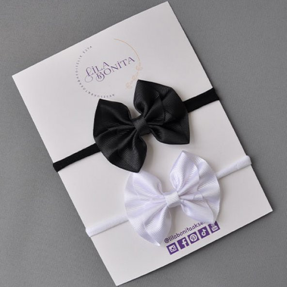 El yapımı 2li Siyah-Beyaz Kız Bebek-Çocuk İz Yapmaz Kurdele Kruvaze Fiyonk Saç bandı/Bandanası