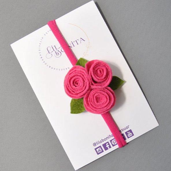 El yapımı Pembe Kız Bebek-Çocuk İz Yapmaz Keçe Gül Bahçesi Model Saç Bandı/Bandanası
