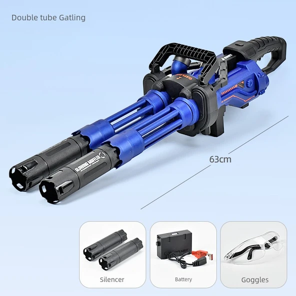 Elektrikli Gatling Oyuncak Silah - Mavi Model / 3 Adet + Kamuflaj Yelek + Hedef